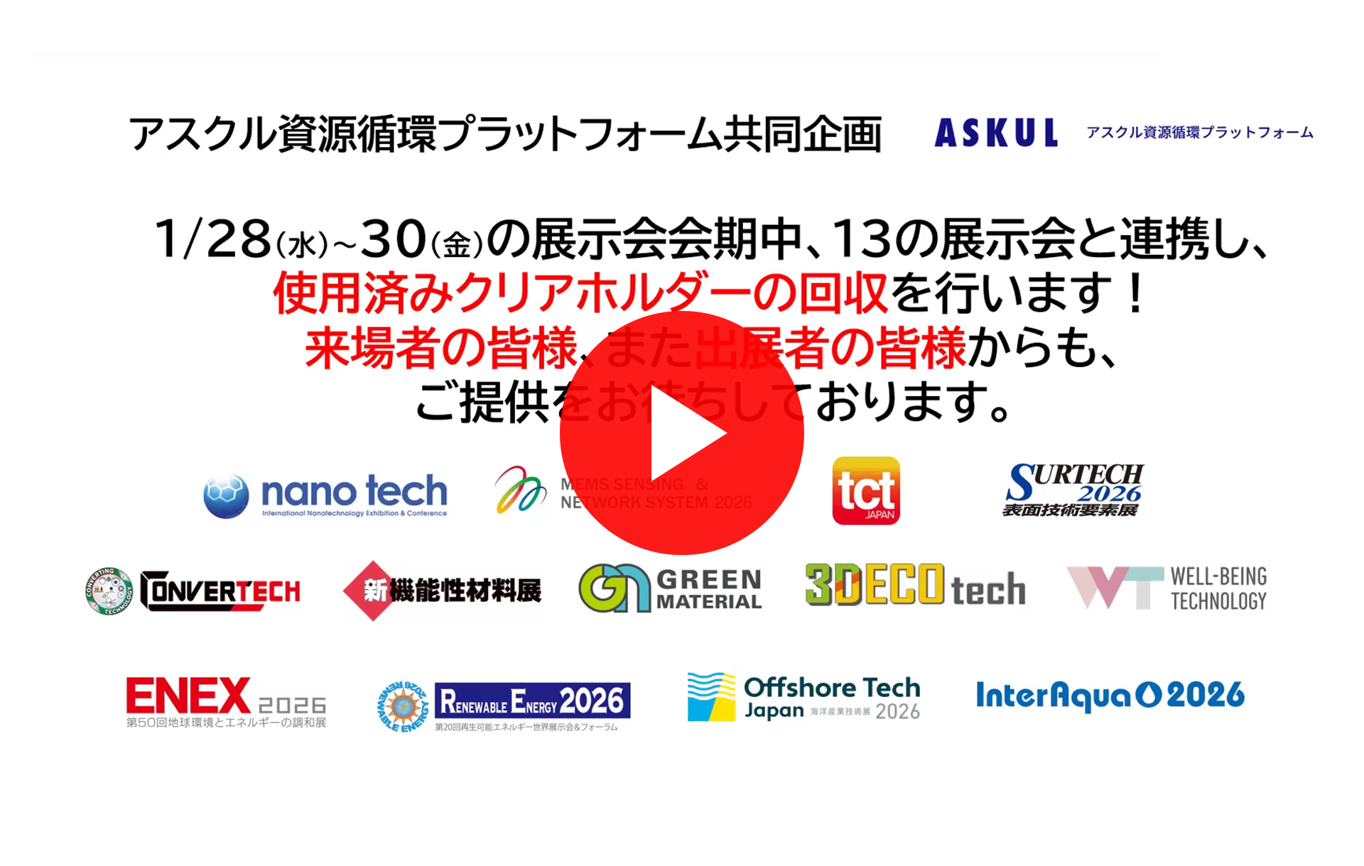 展示会開催期間中:2026年1月28日(水)~30日(金)に展示会場へご来場いただく際は、使用済みのクリアホルダーをお持ちください。